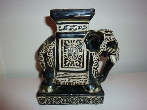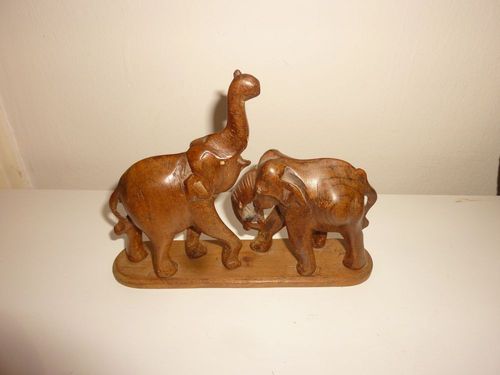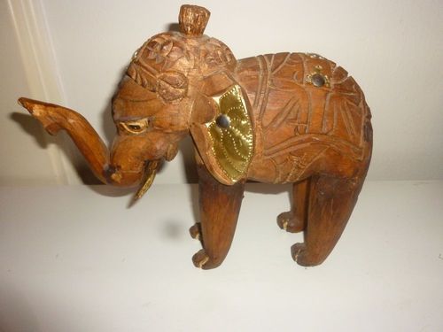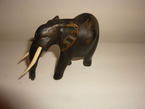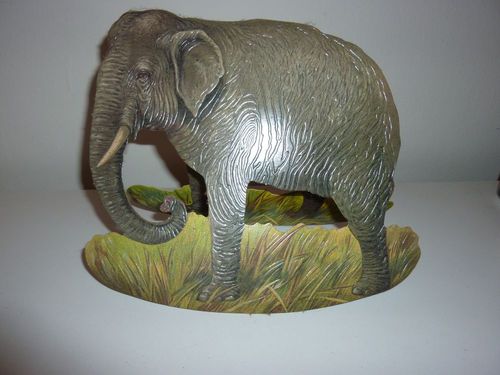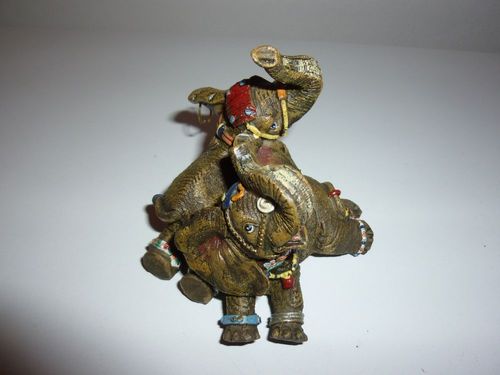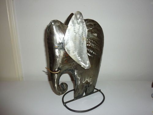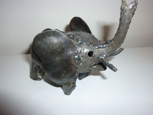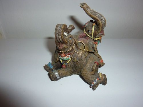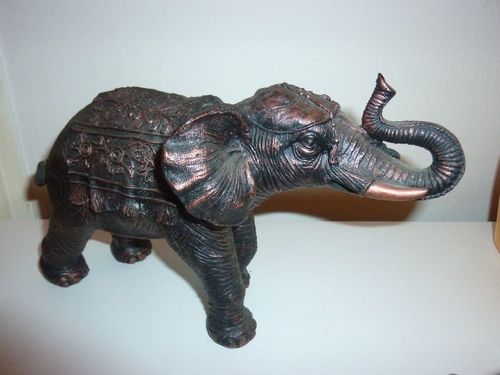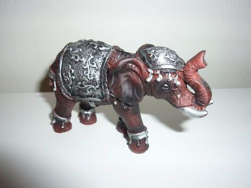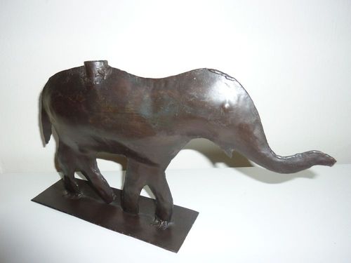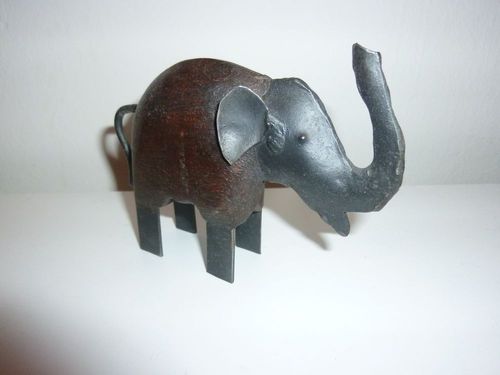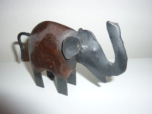 braun Kopf und Füße aus Metall, Rüssel: oben, Stoßzähne: ja