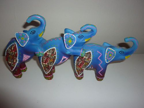 blau bunt Glückselefant, Rüssel: oben, Stoßzähne: nein
