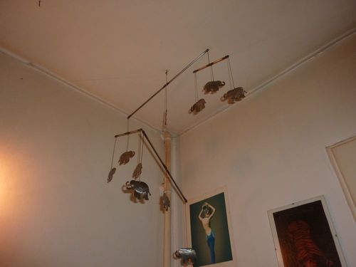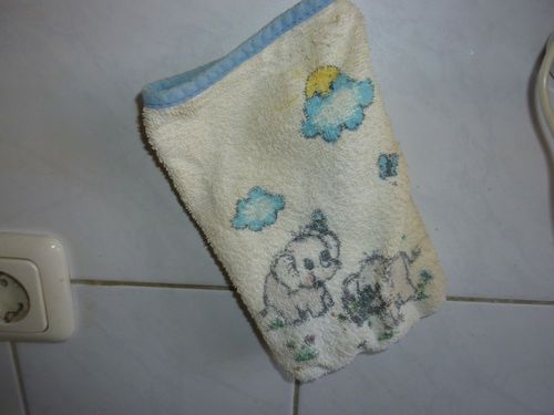 sitzt ganz bunt, Rüssel: oben, Stoßzähne: nein