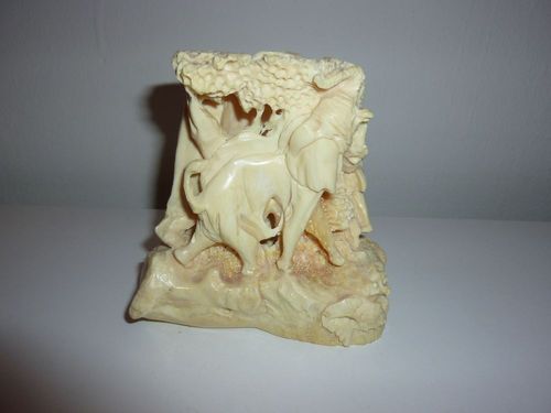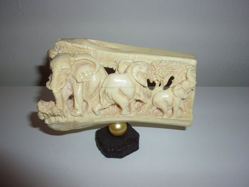 braun mit metallisch glänzender Verzierung, Rüssel: oben, Stoßzähne: ja
