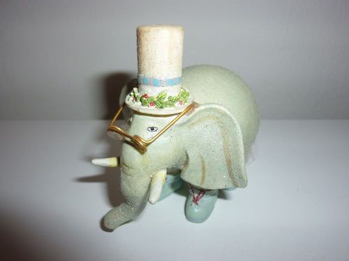grau Glitter Mann mit Brille, Rüssel: unten, Stoßzähne: ja