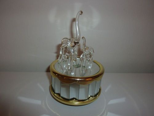 Spieluhr rund mit Gold 2 Elefanten, Rüssel: oben, Stoßzähne: ja