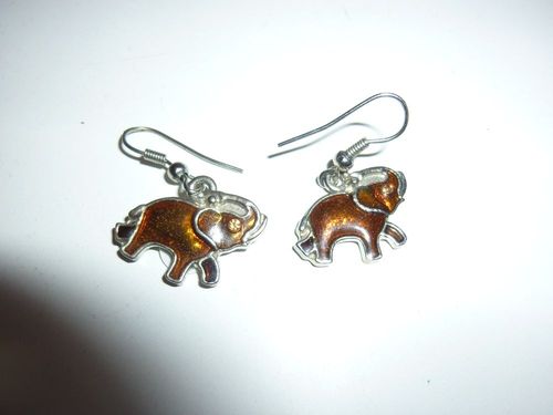 Ohrringe braun gold, Rüssel: oben, Stoßzähne: ja