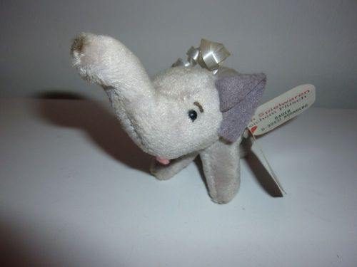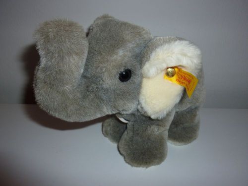 grau Steifftier mit Knopf im Ohr, Rüssel: oben, Stoßzähne: nein