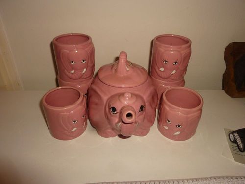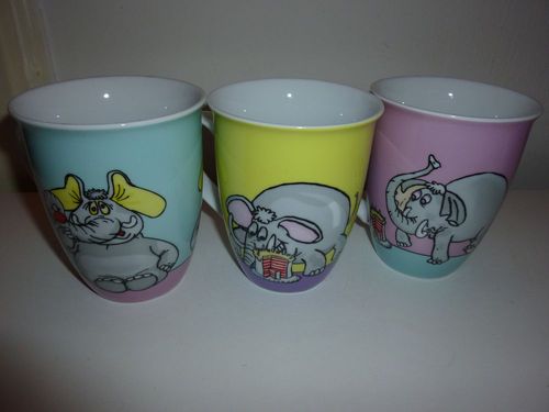 Kaffeetassen gelb hellblau rosa, Rüssel: oben, Stoßzähne: nein