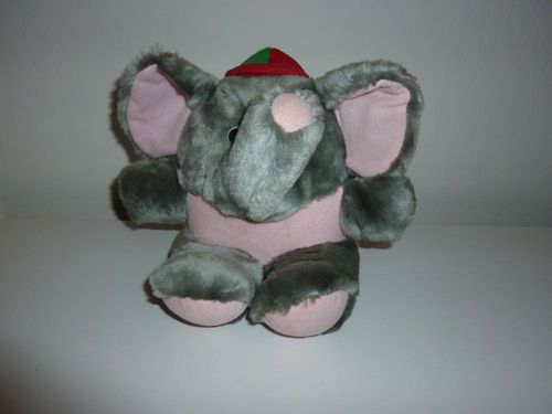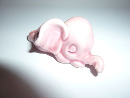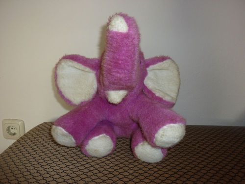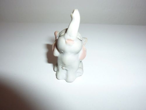 rosa mit weißen Ohren Pfoten sitzt, Rüssel: oben, Stoßzähne: nein