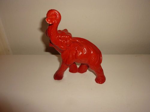 rot selbst angemalt, Rüssel: oben, Stoßzähne: ja