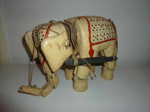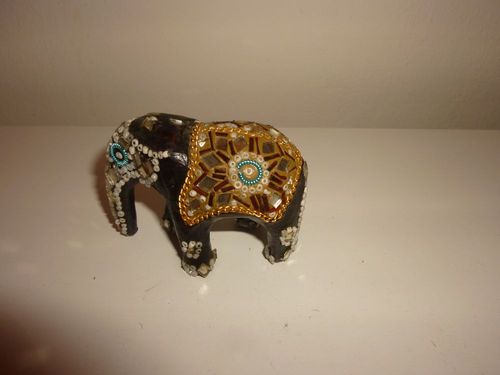 schwarz bunt bemalt indisch, Rüssel: unten, Stoßzähne: ja