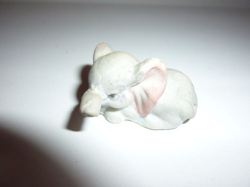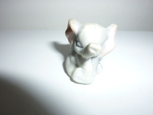 hellgrau mit rosa Ohren sitzend Augen zu, Rüssel: oben, Stoßzähne: nein