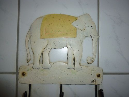 beige Handtuchhalter mit 3 Haken, Rüssel: unten, Stoßzähne: nein
