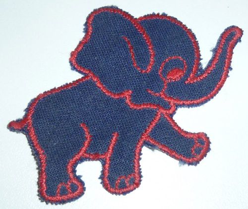 Aufnäher schwarz mit rot, Rüssel: oben, Stoßzähne: nein