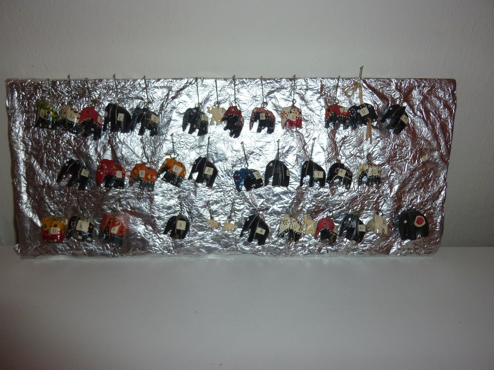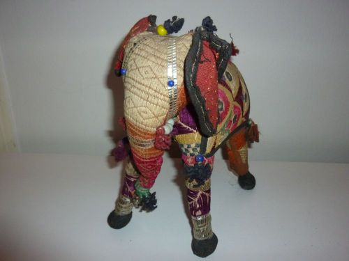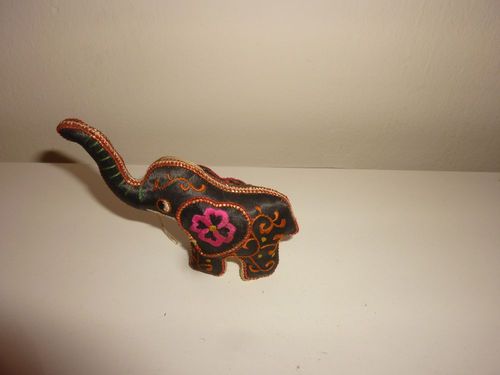 schwarz bunt bestickt zum aufhängen, Rüssel: oben, Stoßzähne: nein
