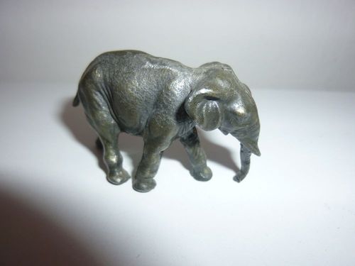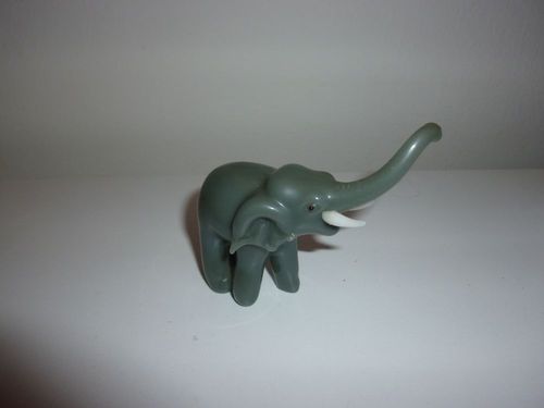 grau mit total verdrehtem Kopf, Rüssel: oben, Stoßzähne: nein