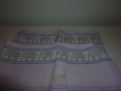 Geschirrhandtücher rosa weiß, Rüssel: unten, Stoßzähne: ja