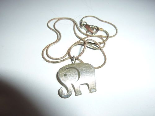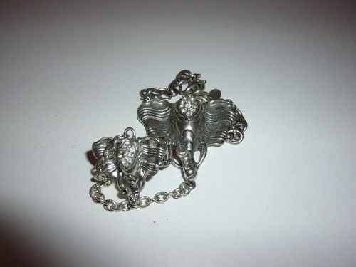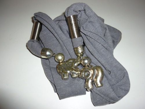 Schal grau am Ende je ein silberner Elefant, Rüssel: oben, Stoßzähne: ja