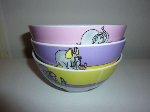 Müslischalen gelb lila rosa, Rüssel: oben, Stoßzähne: ja