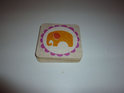 Bierdeckel mit orangen Elefant, Rüssel: unten, Stoßzähne: nein