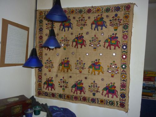 Wandbehang indische mit 10 Elefanten, Rüssel: unten, Stoßzähne: ja